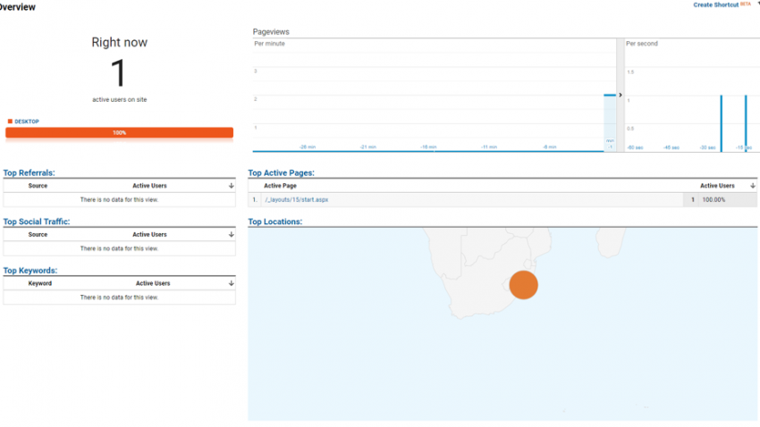 14. Check your real-time analytics in Google Analytics, and if you're lucky, you'll see some activity.