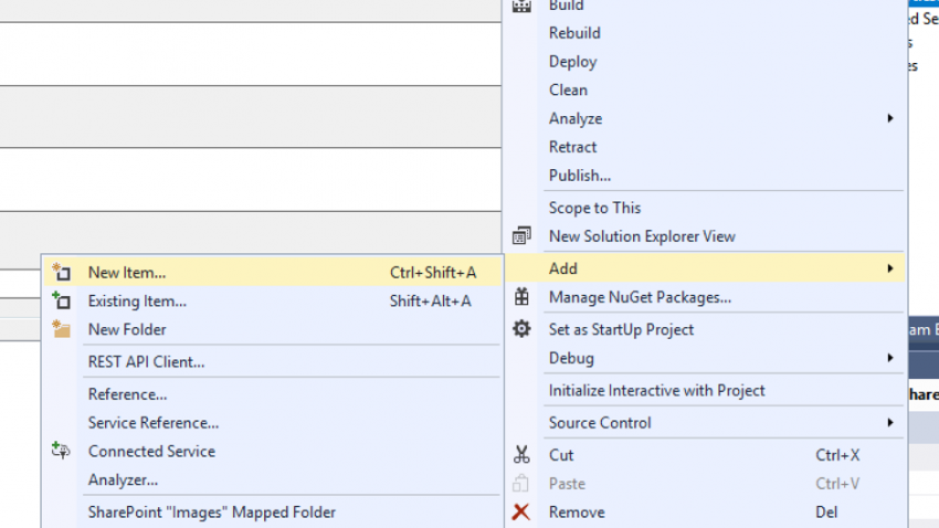 4. Once the project has been created, choose Add >New Item.