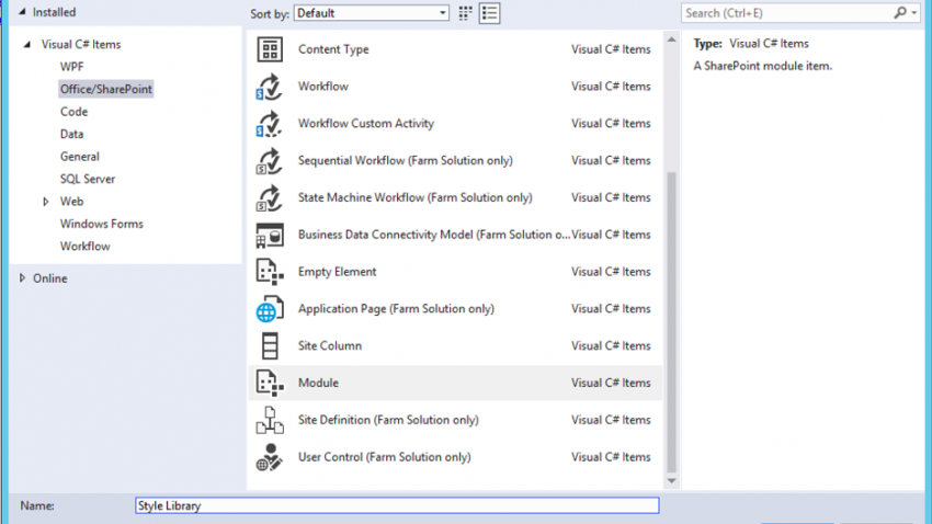 6. Add another New Item and this time select Module, and call it Style Library.