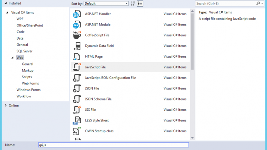 8. Add a new JavaScript file to the /GA/js folder. Name the file ga.js 👇