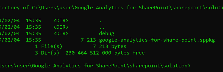 }7. Run a command prompt in the "Google Analytics for SharePoint" package folder and run the following command:
