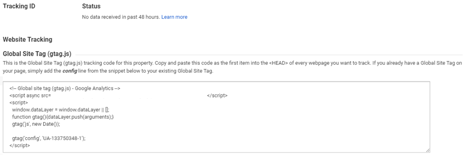 gtag('config', '${trackingID}');